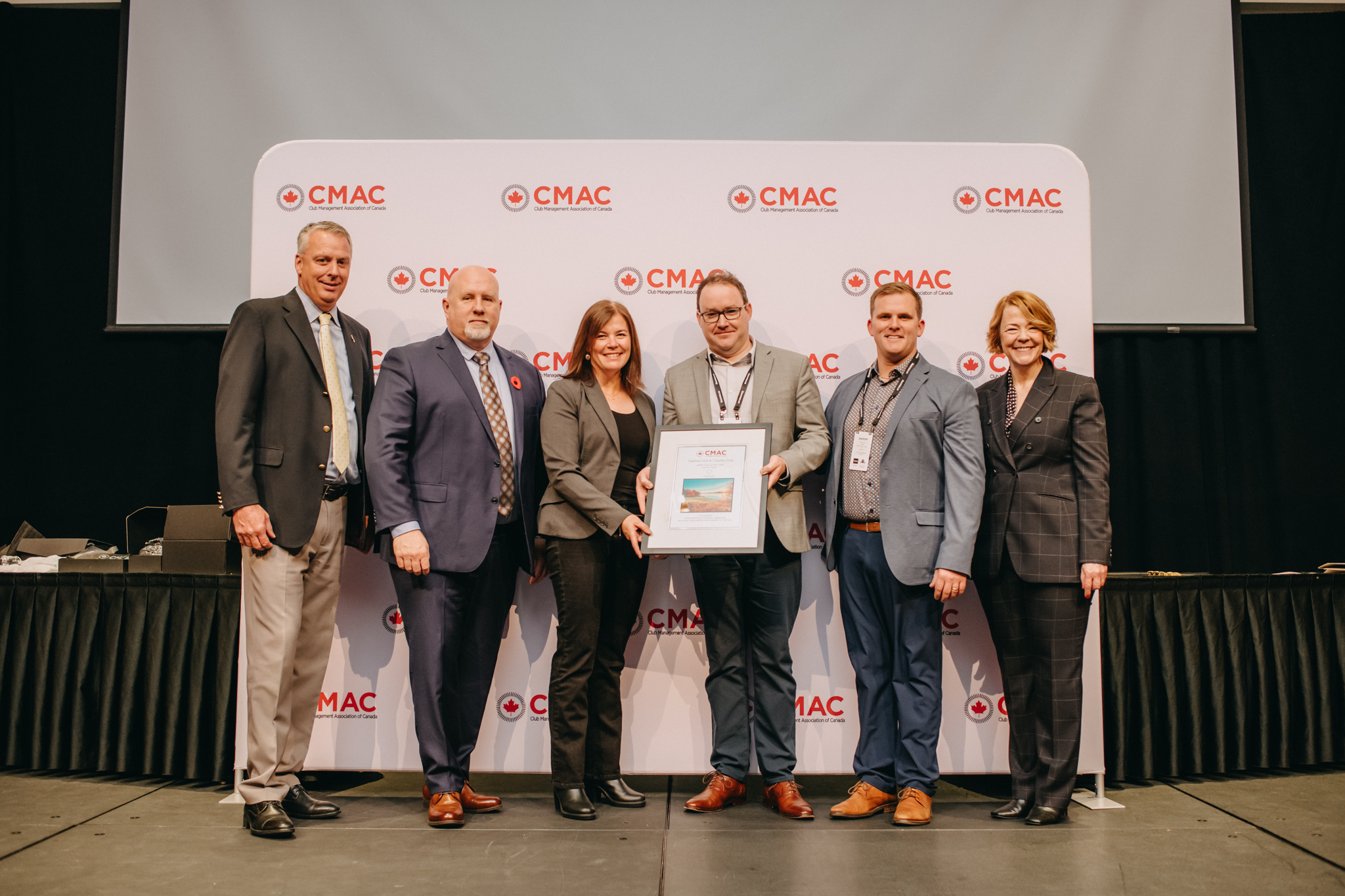 Dave Fox, CCM , CCE, CMAC National President 2025, Edward Moke, CCM, CMAC Awards Committee Chair, Racheal Weagle, Eric Tobin, PGA, and Suzanne Godbehere, CMAC CEO