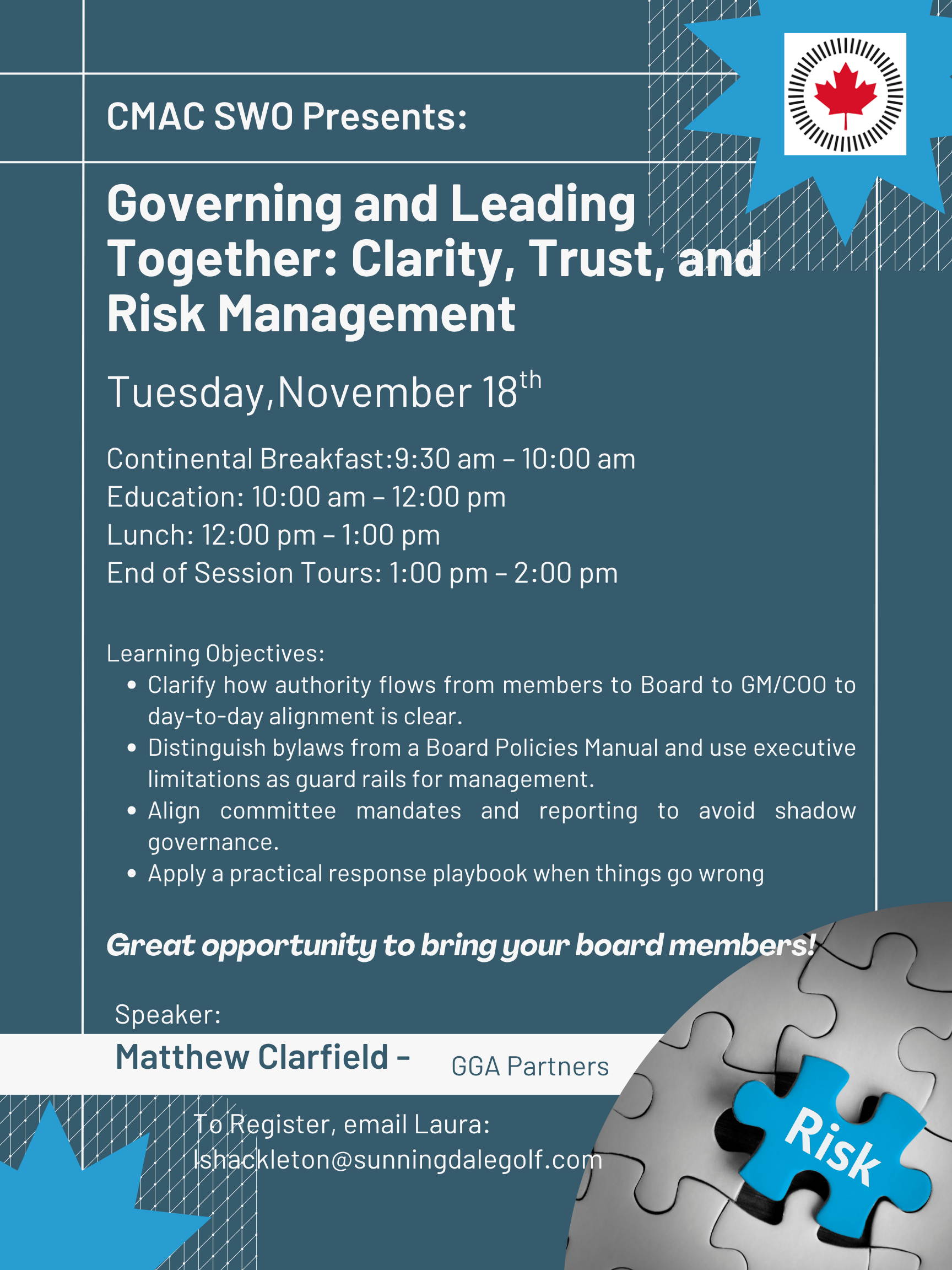 Join the Southwest Ontario Branch for this session that will cover important governance topics, sharing insights and sparking engaging conversations.